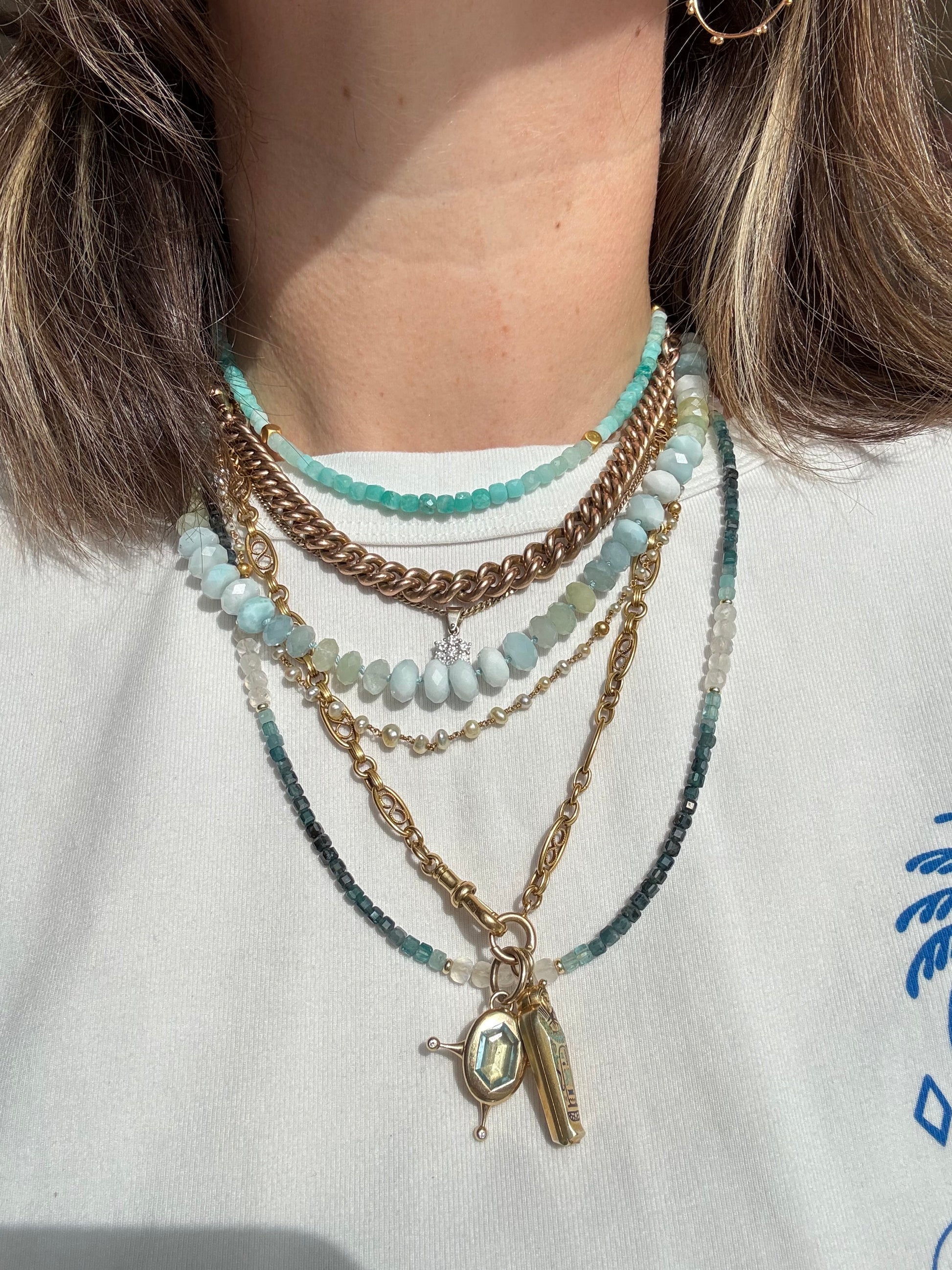 Beautiful and bold amazonite paired with solid gold beads and magnetic clasp.